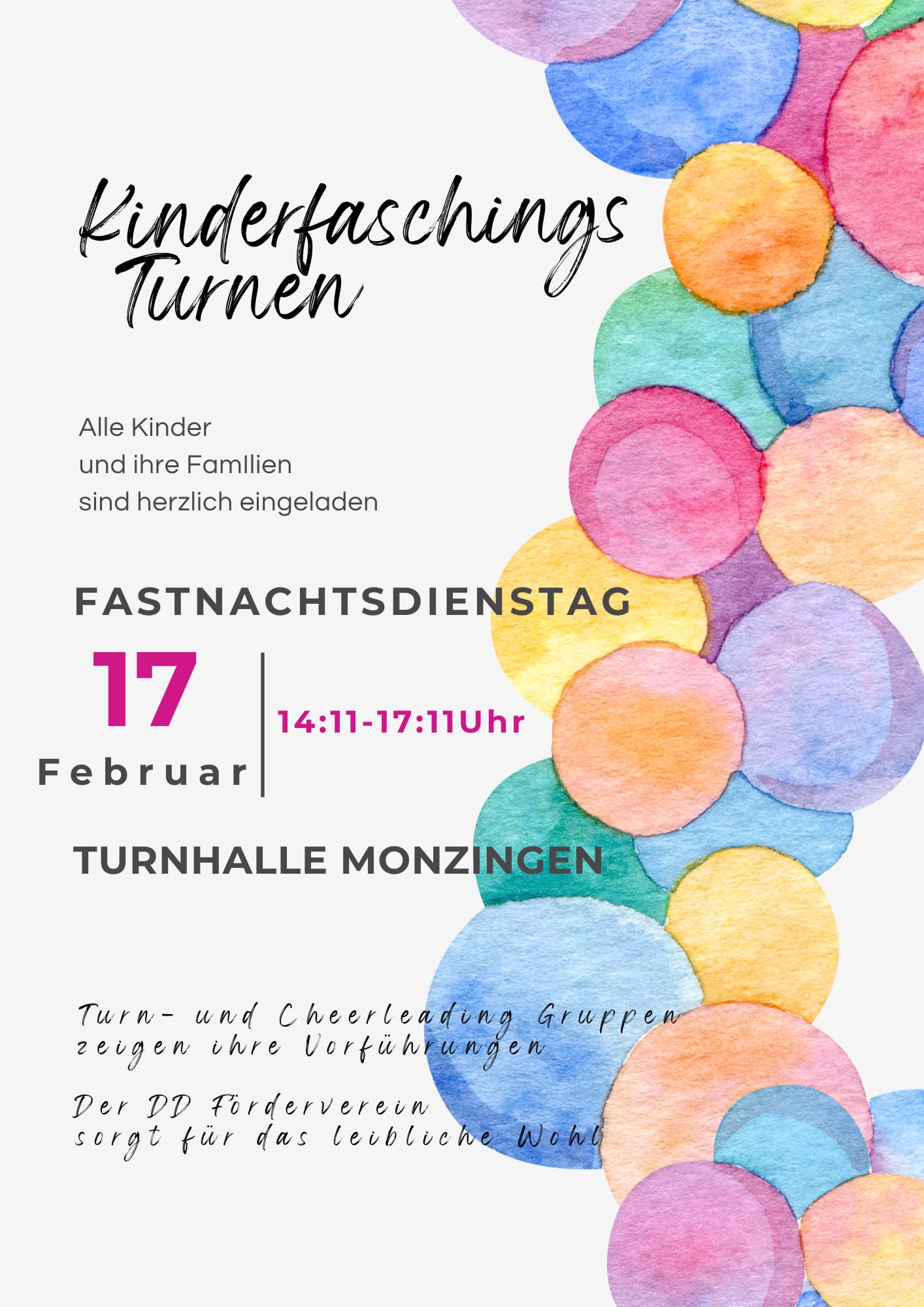 Am 17.02.2026 sind alle Kinder und ihre Familien eingeladen gemeinsam in der Turnhalle zu feiern, zu tanzen und Spaß zuhaben.